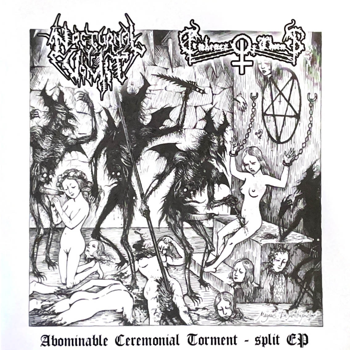 Nocturnal Vomit / Embrace Of Thorns – Abominable Ceremonial Torment (Kill Yourself Productions, vinilo negro, nuevo, 1 copia) – $12.000.